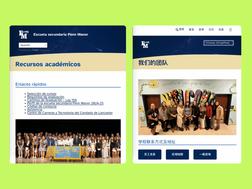 This was a full-site-edit build, which expands what’s possible for Penn Manor’s team to manage on the front end.